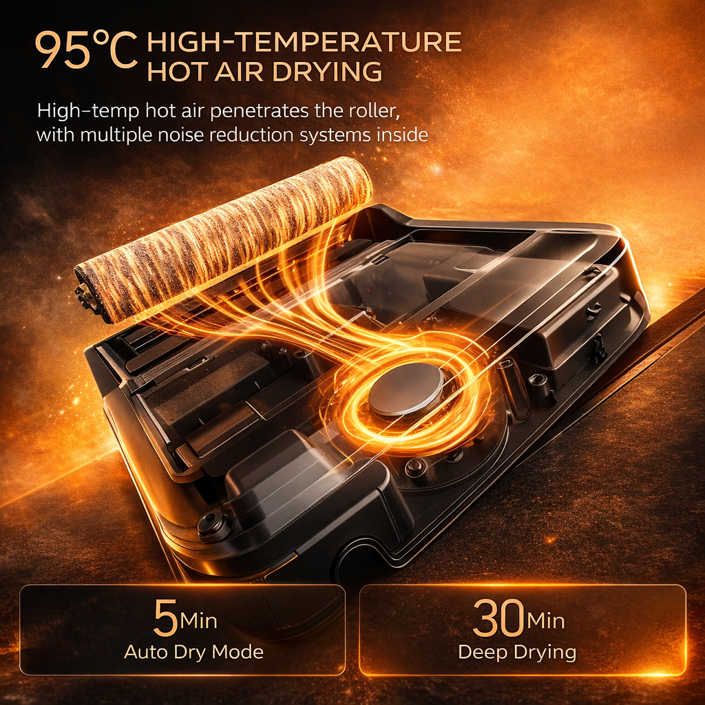 One-touch self-cleaning automatically washes the roller brush after use. Heat helps reduce odor and residue buildup, keeping the machine fresh without manual cleaning.