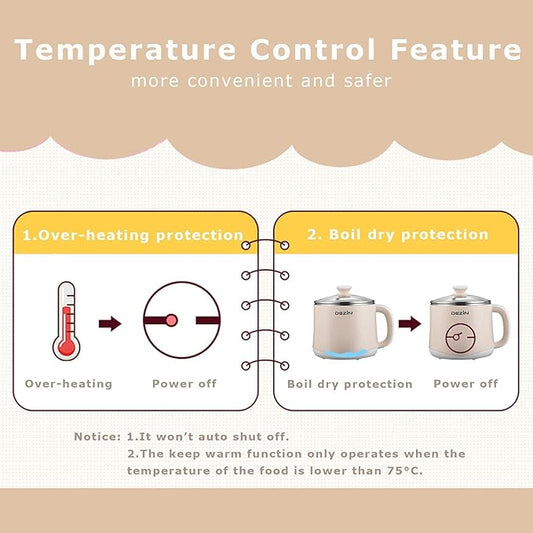 1.6L Ramen Cooker, Hot Pot Electric Stainless Steel, Multifunctional Cooker for Egg, Pasta, Soup, Porridge, Oatmeal with Temperature Control and Keep Warm Function